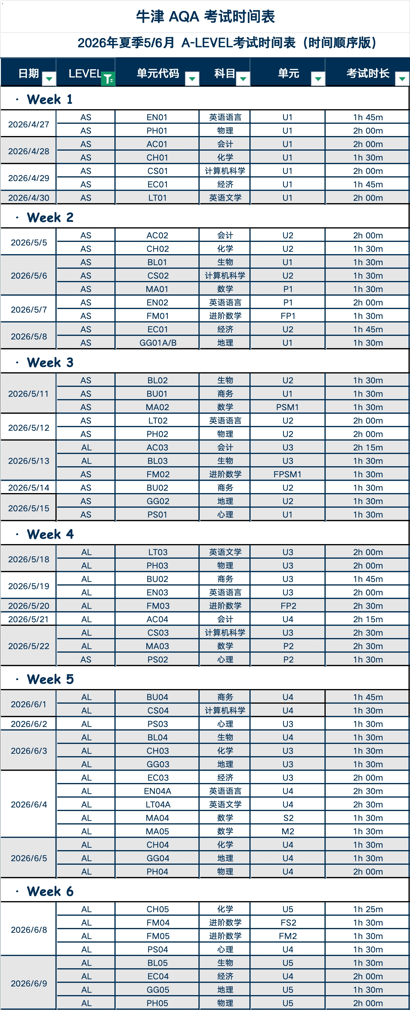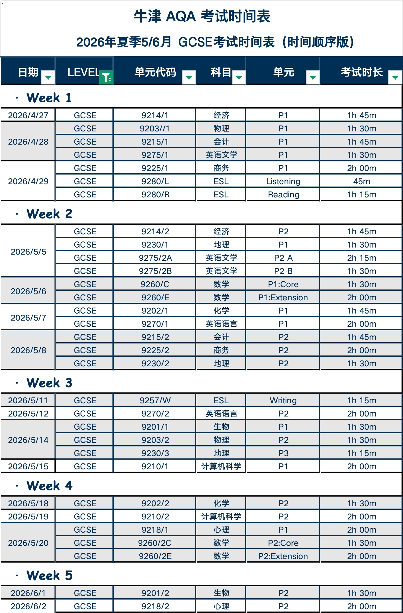 牛津AQA考试局 IGCSE&A-Level夏季5月/6月大考时间汇总