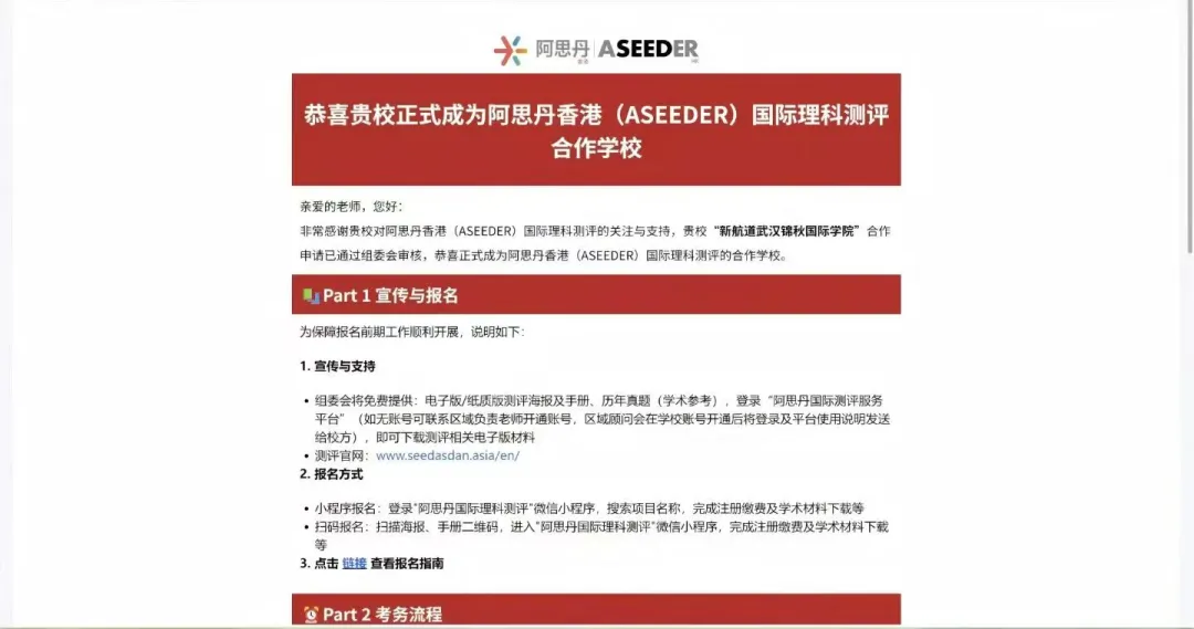 我们很高兴地向您宣布:新航道武汉锦秋学院已正式成为阿思丹(ASEEDER)官方认证考点。从此,武汉学子在家门口就能步入考场,以最从容的姿态迎战全球学术竞赛,真正实现“主场作战,赢在起跑线”!