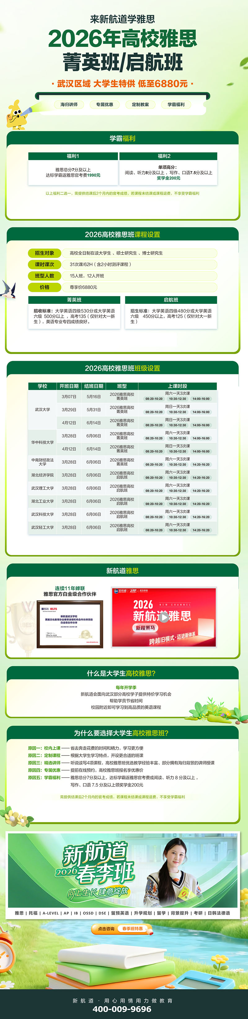 新航道武汉学校所有教师由总部教务统一排课,各分校师资水平均衡。